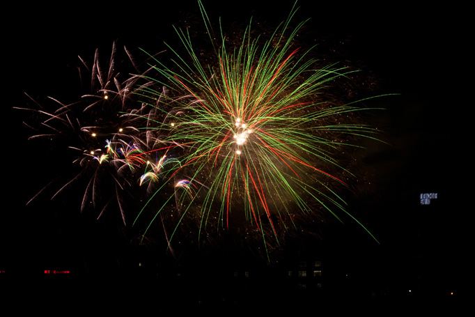 赤橙黃綠青藍(lán)紫,誰(shuí)持彩練當(dāng)空舞。千百朵煙花在夜空中盡情綻放,變幻出千姿百態(tài),時(shí)而紅霞漫天、光芒萬(wàn)丈,時(shí)而銀星點(diǎn)點(diǎn)、碎玉飛花,點(diǎn)燃了現(xiàn)場(chǎng)人群歡度佳節(jié)的熱情。一朵朵或紅或綠或紫或藍(lán)的五彩煙花迅速騰起又悠然飄下,宛如夜空中翩翩起舞的精靈,或錯(cuò)落有致或急速奔放,把夜空點(diǎn)綴得美輪美奐,把整個(gè)夜空映襯得異彩紛呈。點(diǎn)點(diǎn)星光同閃亮,片片花海共綻放,百千朵煙花如龍燈匯集,春潮疊出,彩帶飄揚(yáng),星月滿天?!敖鹄讏?bào)喜”、“萬(wàn)炮齊鳴”、“百花爭(zhēng)春”等各式禮花在夜空中絢麗綻放,將現(xiàn)場(chǎng)氣氛一次次推向高潮,讓大家留下難忘回憶。喜慶的禮炮聲,和著男女老少的歡聲笑語(yǔ),讓節(jié)日里的華勤處處洋溢著歡樂(lè)、溫馨、和諧的氣氛。