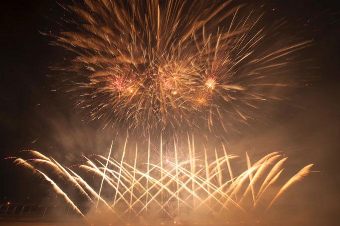 在人們仰望注視下,絢爛的煙花曼妙地展開一張張淺黃、銀白、洗綠、淡紫、清藍、粉紅的笑臉,璀璨了整個天際。時而像牡丹盛開、金菊怒放;時而如彩蝶翩躚、金龍狂舞;時而似火樹爛漫、虹彩紛飛。點點流火如星雨般墜落,似乎觸手可及。忽然間,幾枚焰火升空,百余盞紅燈籠從中綻出,燈籠隨風搖曳,飄向遠處,與當空皓月相映生輝,營造出“燈樹千光照、明月逐人來”的優(yōu)美意境,引發(fā)人群陣陣驚呼。整場焰火晚會高潮迭起、氣勢恢宏,充分展示了華勤集團蓬勃發(fā)展、奮發(fā)向上的昂揚氣勢。
