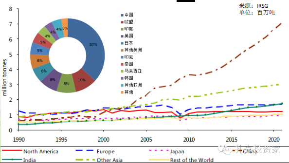 非洲、緬、柬、老近幾年增長(zhǎng)迅速,增幅超10%,幾年前大規(guī)模種植陸續(xù)開(kāi)割。